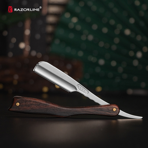 Razorline נירוסטה הטוב ביותר תער ישר עם ידית עץ שחור-חש בטיחות חד תער